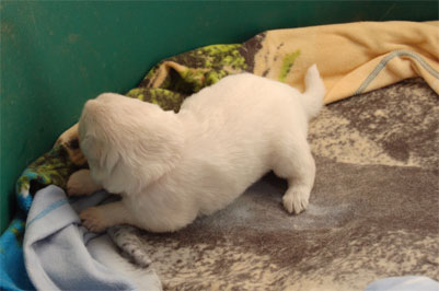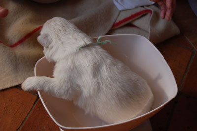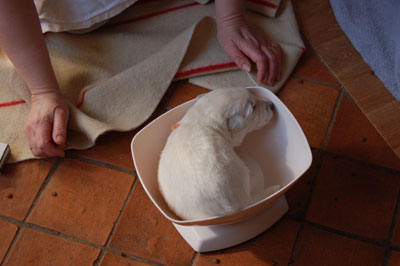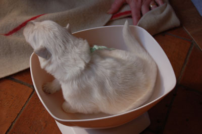 Hé hé, je viens d'aller à la pesée et j'explore le panier de maman en attendant mes soeurs, vous voyez pas mon collier, c'est pour le suspence - ........ - ........ - ........ - ........