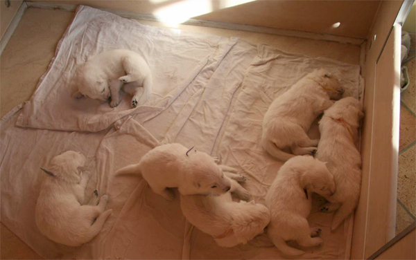 Bonjour à tous Mes bébés ont maintenant 15 jours, ils ont été vermifugés et leurs petits yeux s'ouvrent progressivement. Toujours aussi gourmands, ils se promènent dans la caisse de mise bas sur leur 4 pattes et commencent à jouer ensembles, c'est trop craquant à bientôt, léchouilles à tous. Dixie