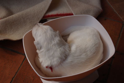 Hé hé, je viens d'aller à la pesée et j'explore le panier de maman en attendant mes soeurs, vous voyez pas mon collier, c'est pour le suspence - ........ - ........ - ........ - ........